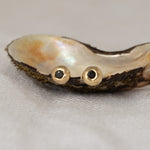 Individually melted studs that are 'crushed' just before they cool to form individual misshapen dots, set with 2 x 1.5mm natural black sapphires.