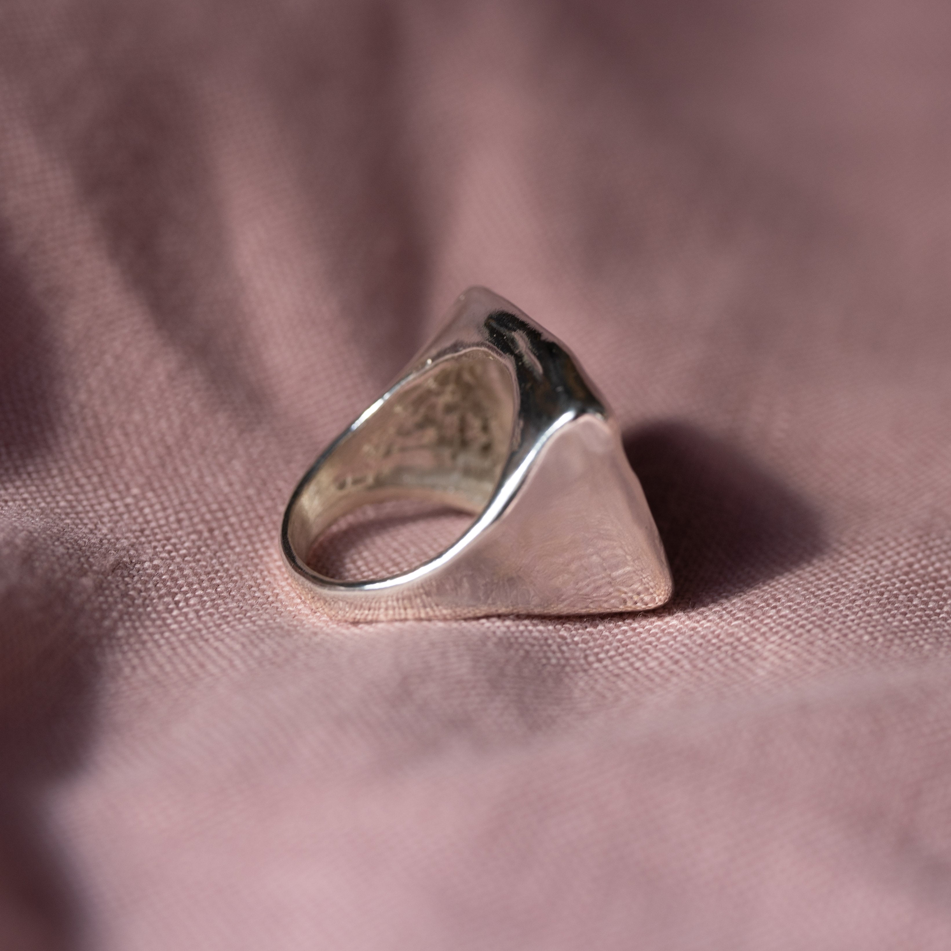 Hand Carved Ring cast in sterling silver. Please note the sizing for larger rings is slightly more loose than for fine rings.