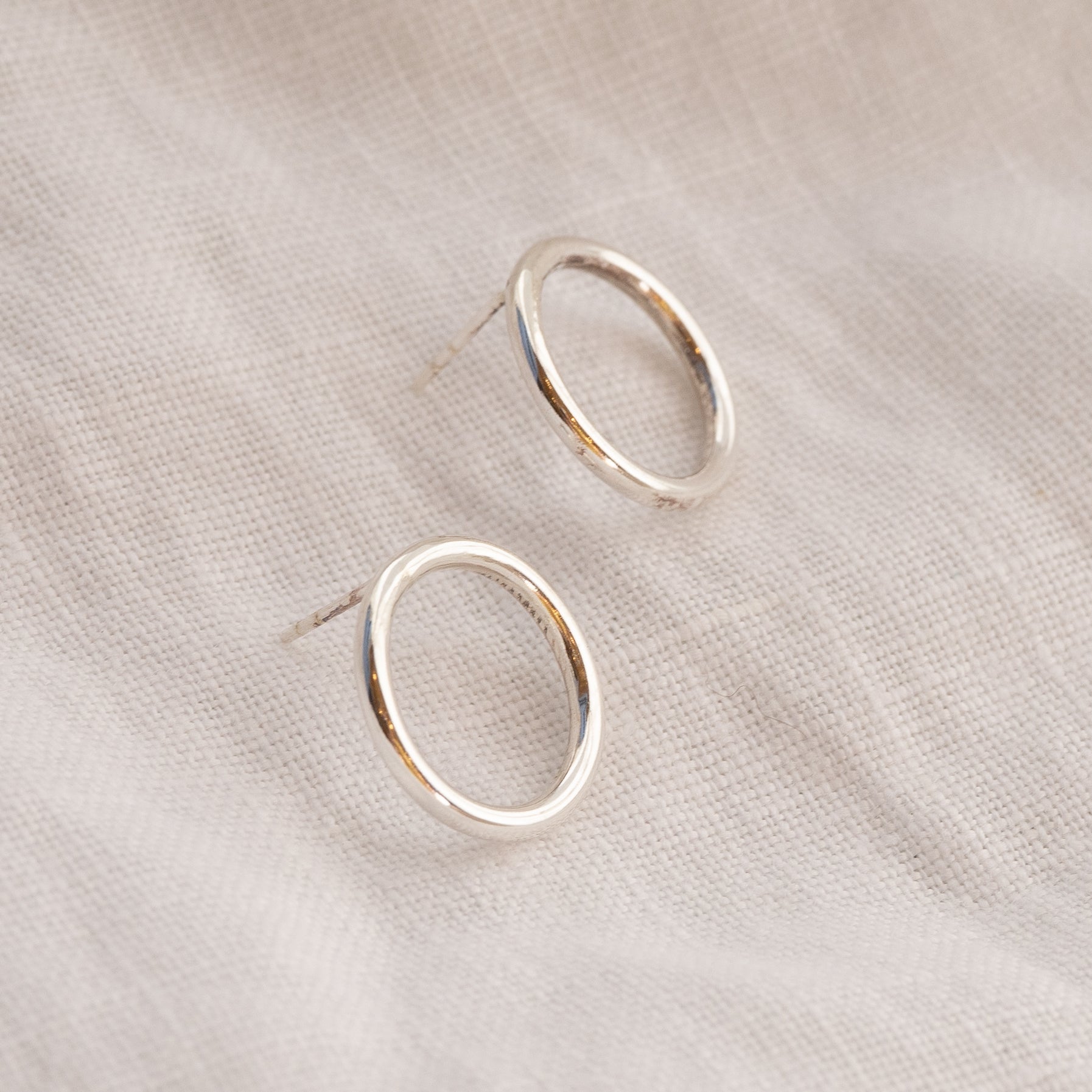 A different take on the classic hoop, attached so the circle is flat on the ear. The circle measures approximately 1.5cm in diameter and is 2mm thick.