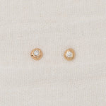 Individually melted studs that are 'crushed' just before they cool to form individual mis-shapen dots, set with 2 x 2mm F+ VS lab diamonds.
