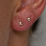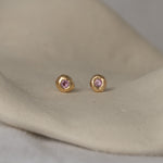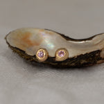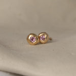 Individually melted studs that are 'crushed' just before they cool to form individual misshapen dots, set with 2 x 1.5mm natural pink sapphires.