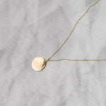 The natural coin necklace is the EWJ take on a classic style. Recycled gold is individually rolled into a disc shape with naturally undulating edges, each piece will be the same weight and roughly the same size but with its own imperfect edges and texture. Layer it up with other pendants or wear alone. Hung on a 50cm 1.3mm Belcher chain.