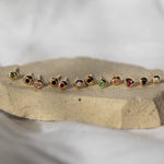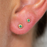 Individually melted studs that are 'crushed' just before they cool to form individual misshapen dots, set with 2 x 1.5mm natural emeralds.